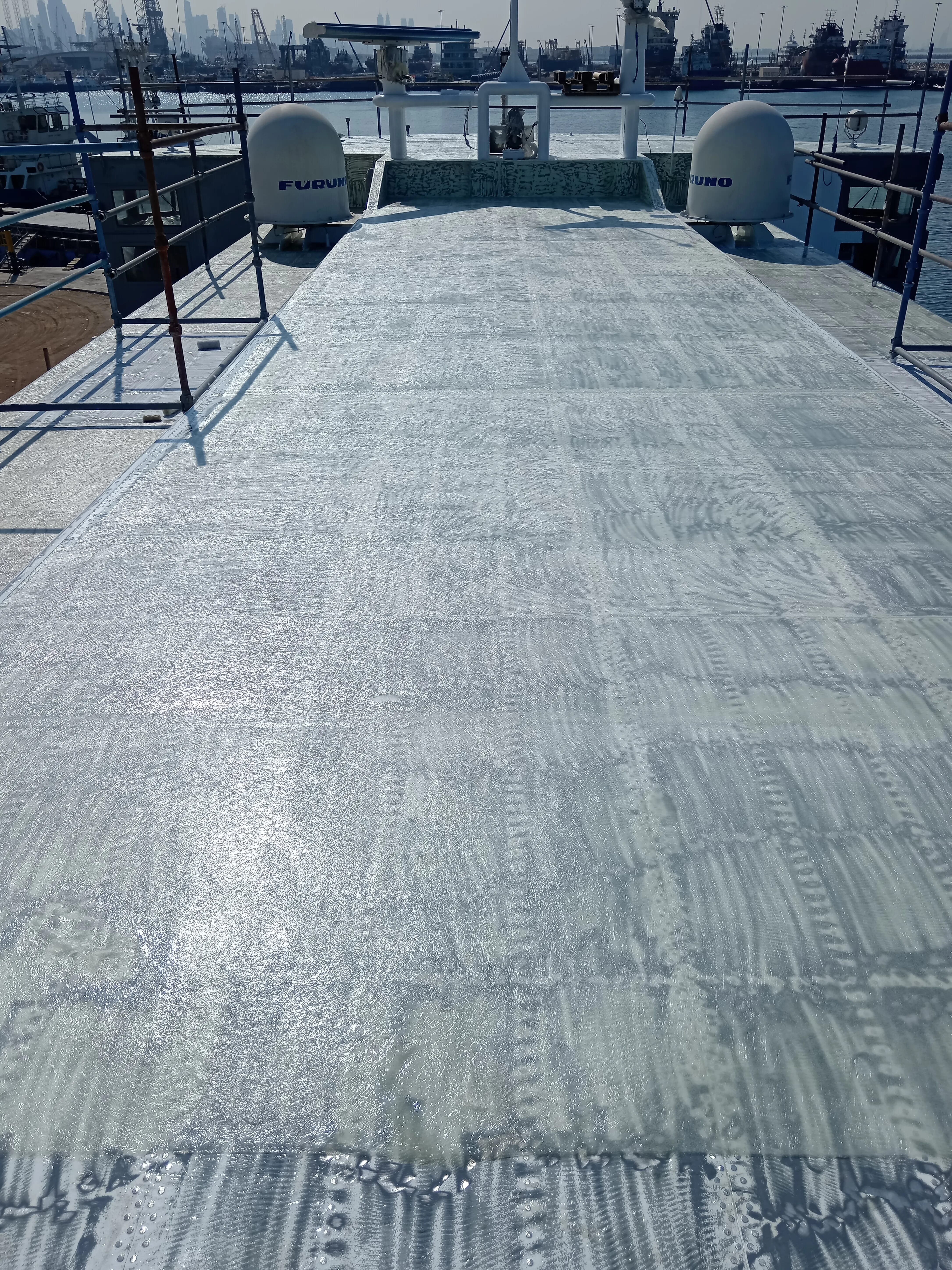 HF provides on-site lamination services when required by the customer. This is sometimes required when there are Monkey island for Ship/ concrete/water/sewage/oil tanks or reservoirs that need to be laminated with GRP to protect the walls of the tanks and provide impermeability. Lamination is also sometimes required in areas where surfaces need to be protected for abrasive chemicals or liquids.
